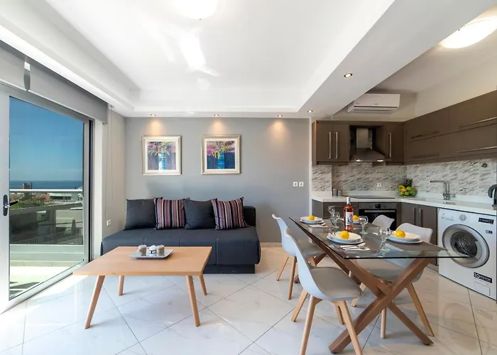 Sunshine Suite Family ligt binnen 10 minuten met de auto van de haven van Souda en omvat parkeerplaatsen voor degenen die met de auto reizen. De Oorlogskerkhof van Souda-baai bevindt zich op 25 minuten wandelen vanaf het appartement van 80 m^2, terwijl Agios Charalampos busstation zeer dicht bij het pand ligt.